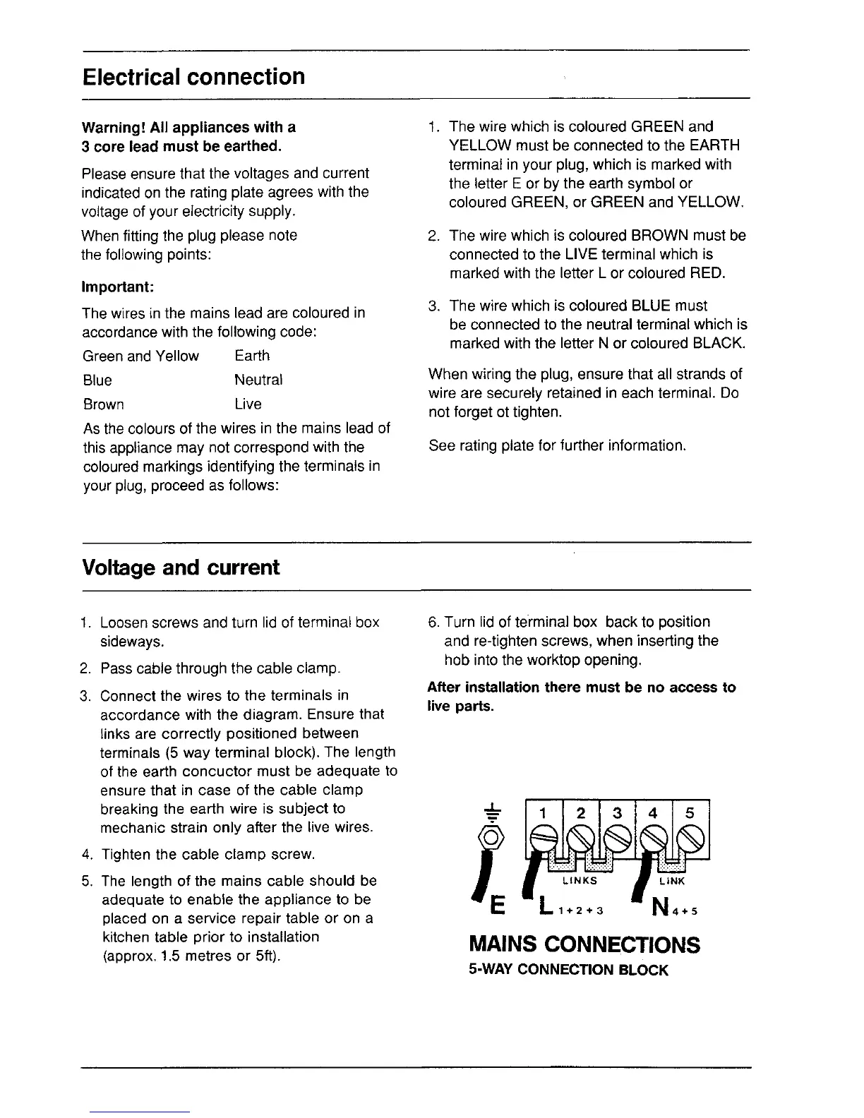 AEG 6200 K - Electrical Connection; Voltage and Current