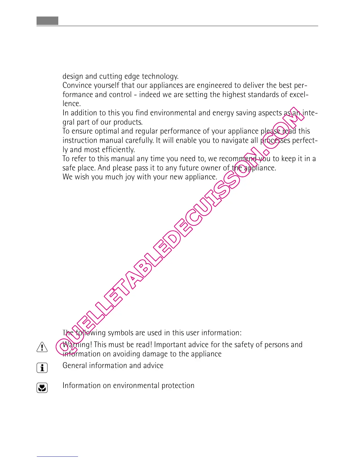 To ensure optimal and regular performance of your appliance please read this