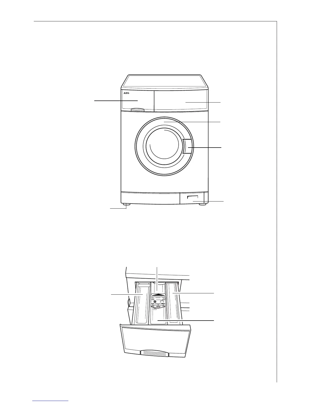 AEG 72630 - Description of the Appliance; Front View; Detergent Dispenser Drawer
