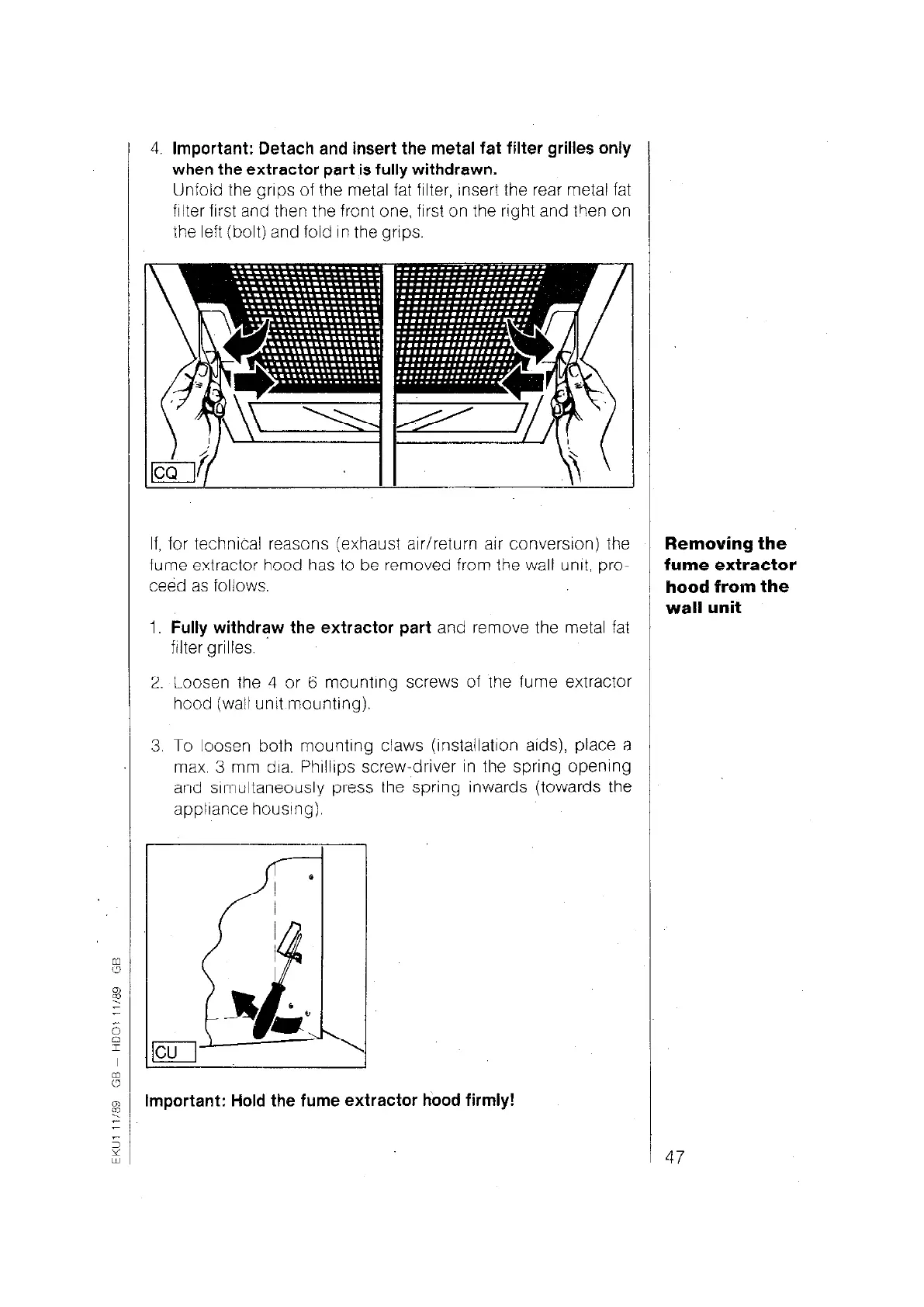AEG 760 D - Detaching Metal Fat Filters; Removing Hood from Wall Unit