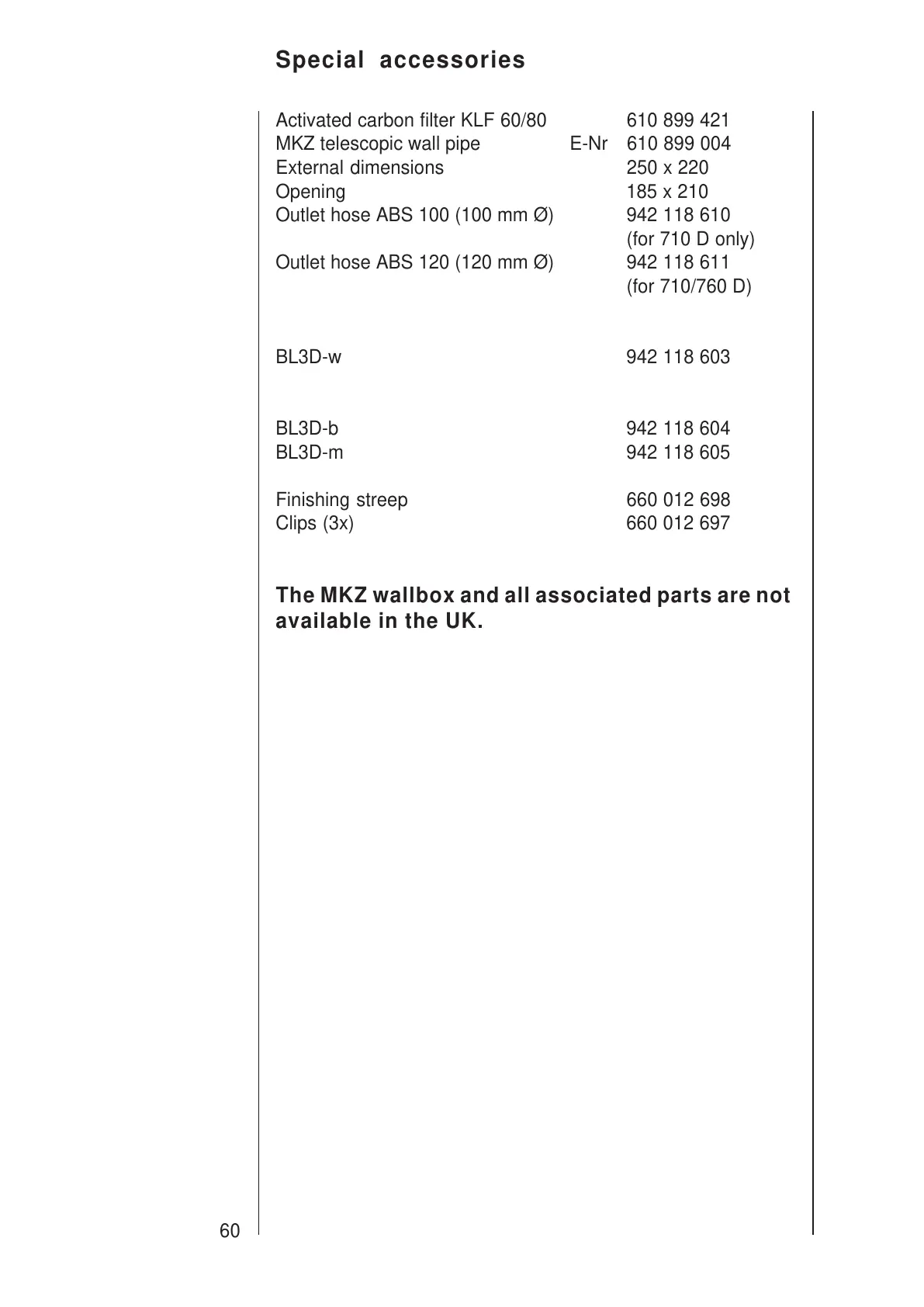 MKZ telescopic wall pipe E-Nr 610 899 004