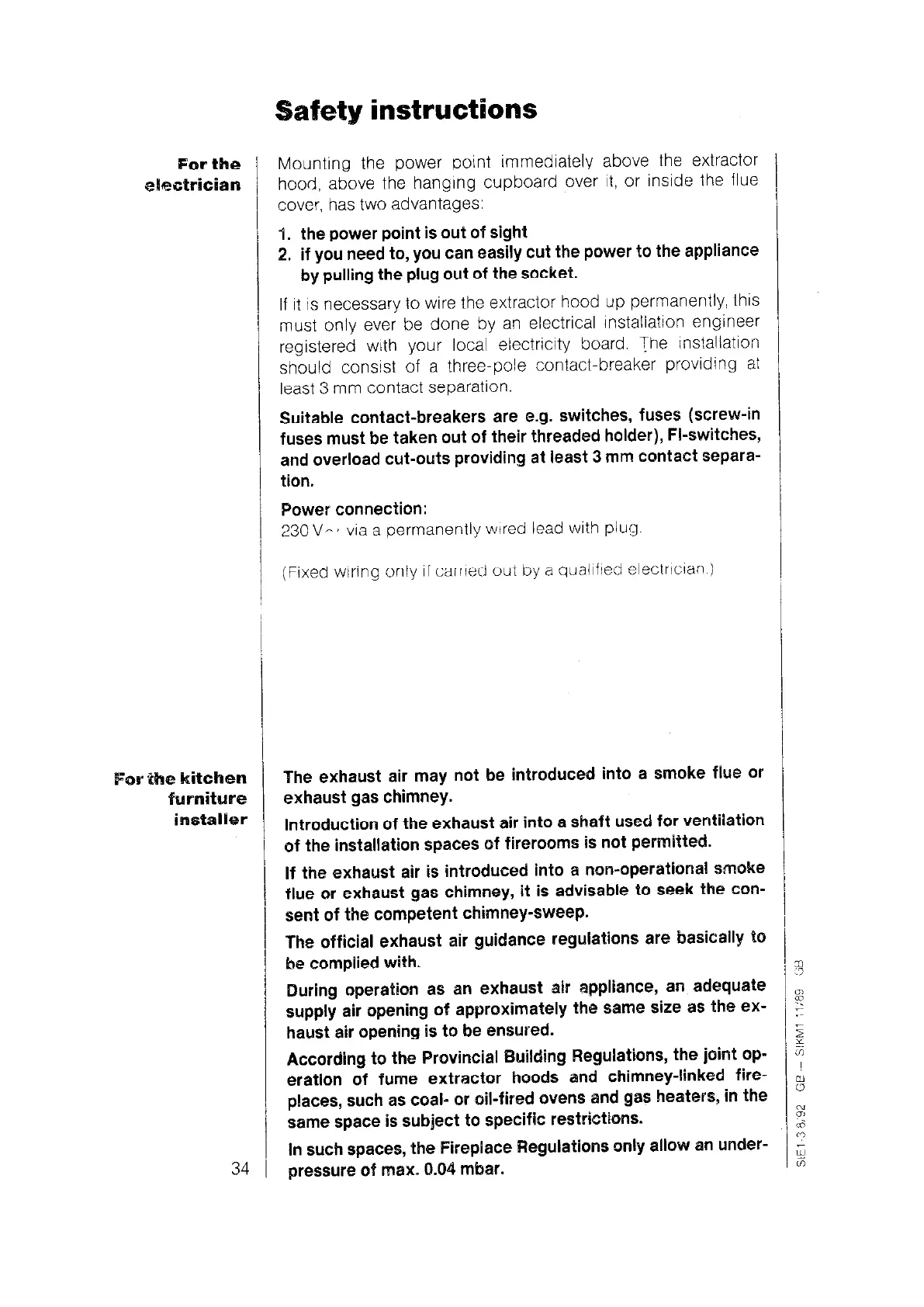 AEG 760 D - Safety Instructions; For the Electrician; For the Kitchen Furniture Installer