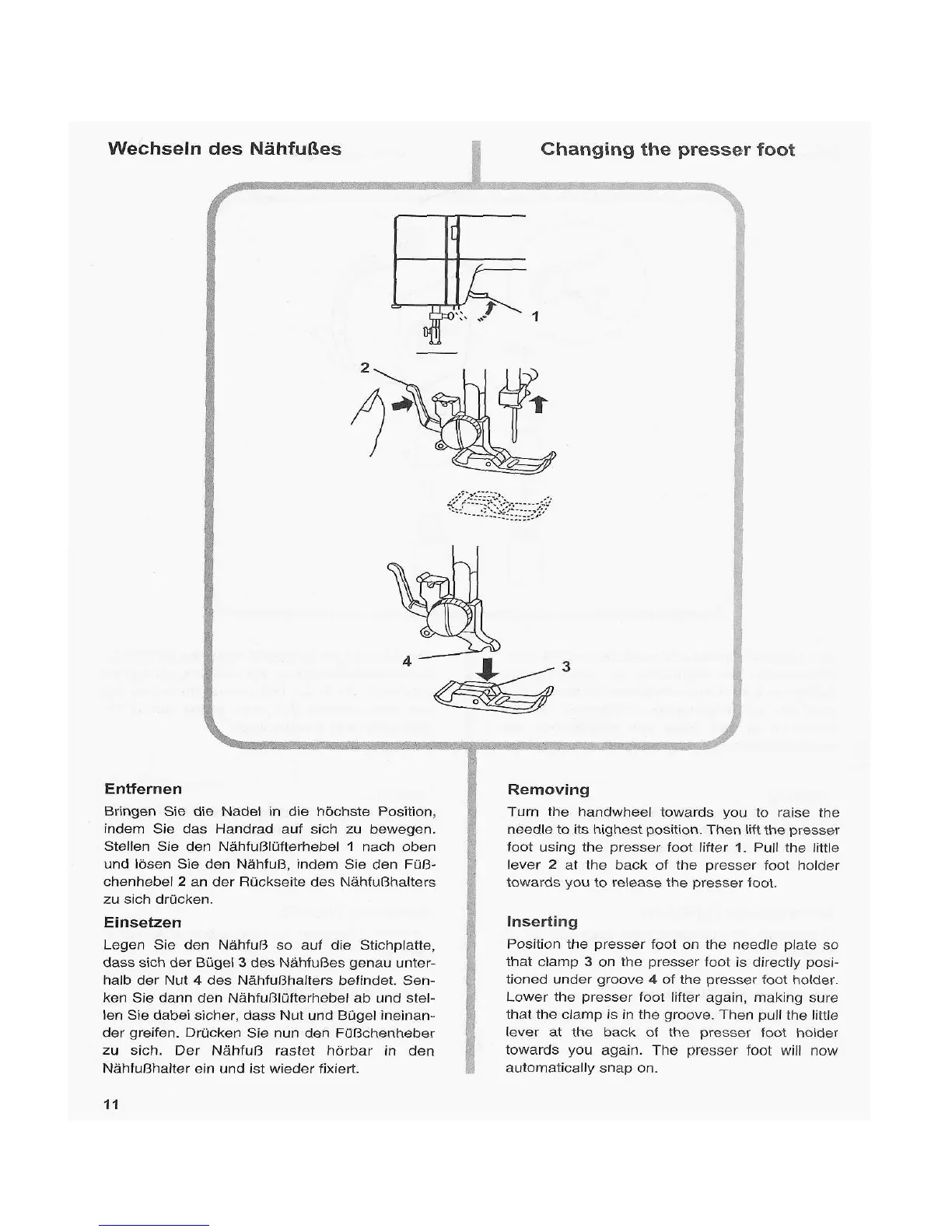 AEG 791 - Changing the Presser Foot; Removing and Attaching the Presser Foot
