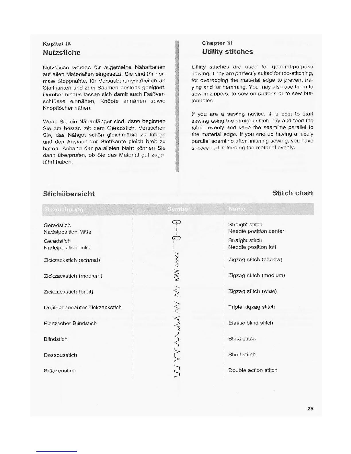 AEG 791 - Chapter III Utility Stitches; Utility Stitch Chart