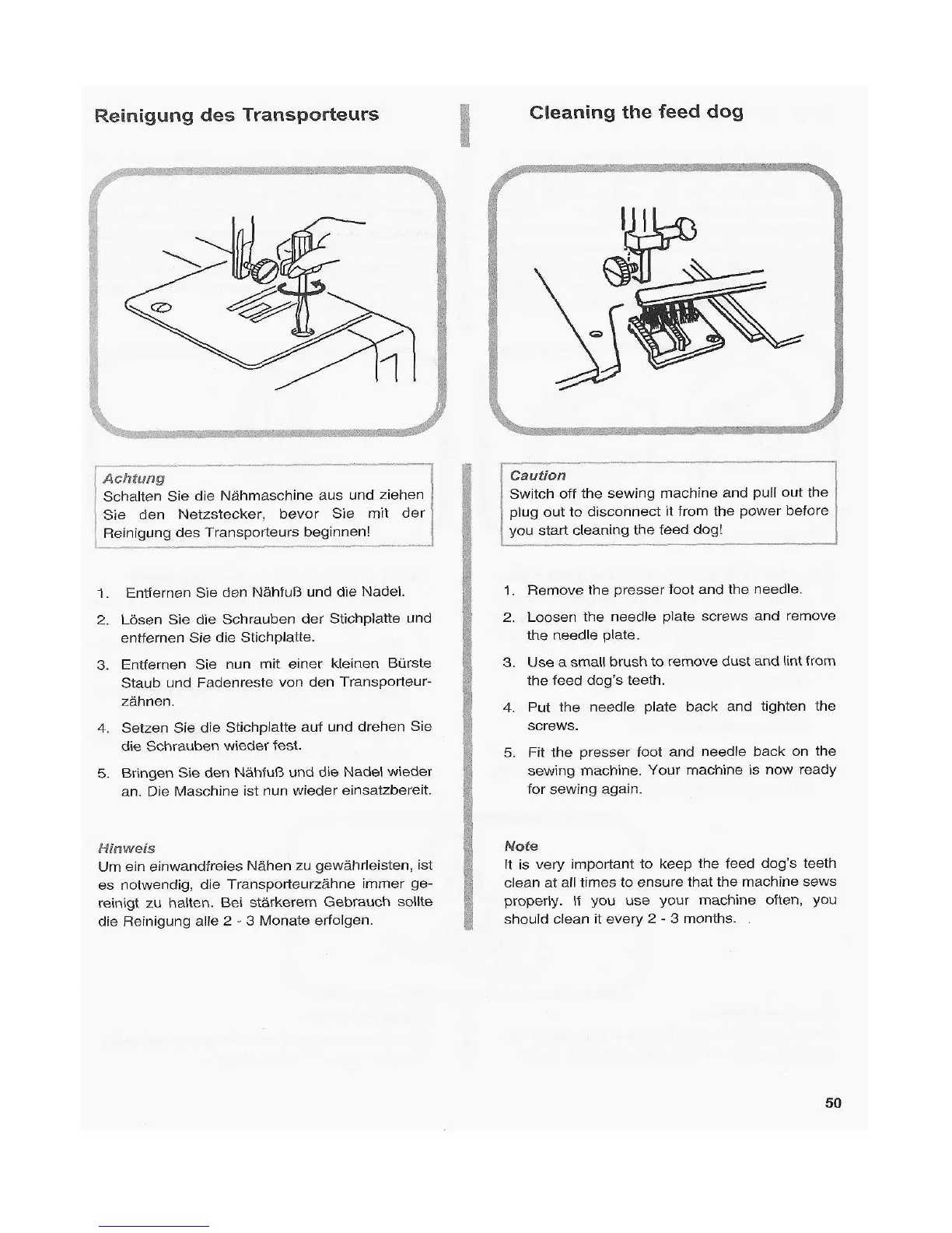 AEG 791 - Cleaning the Feed Dog; Feed Dog Cleaning Note