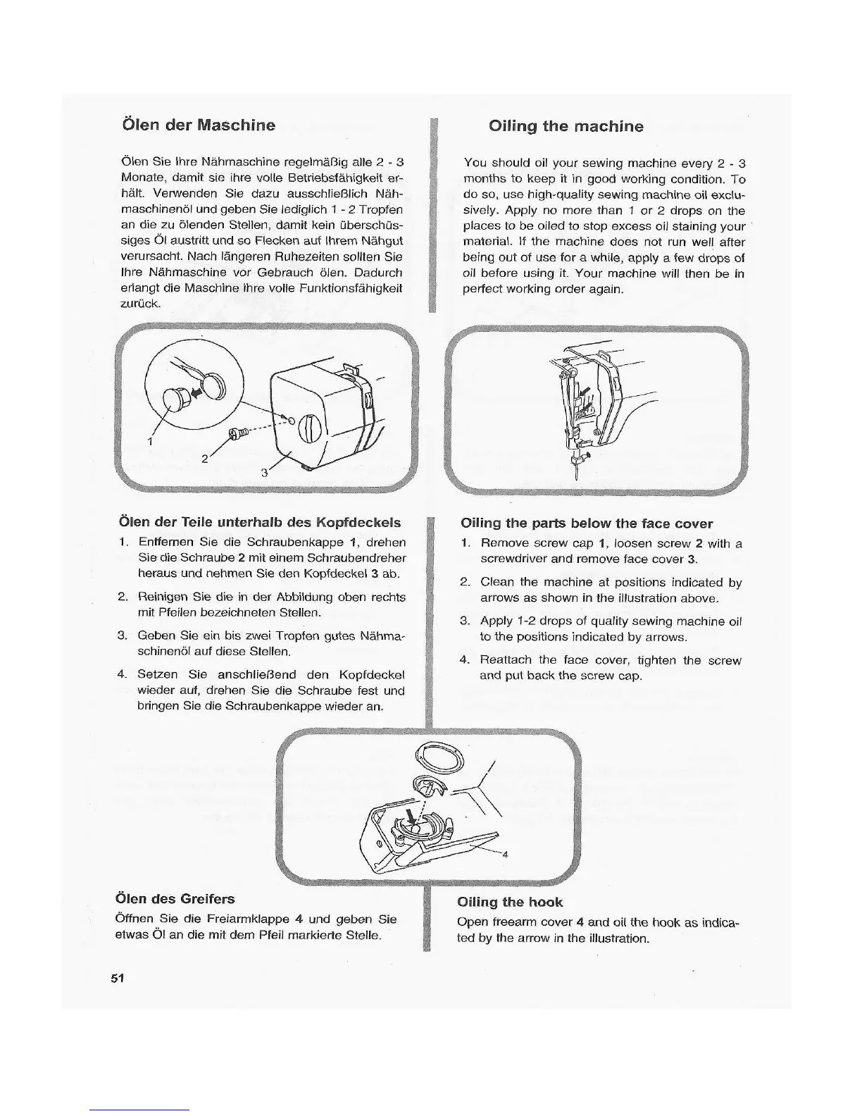 AEG 791 - Oiling the Machine; Oiling Parts Below Face Cover; Oiling the Hook