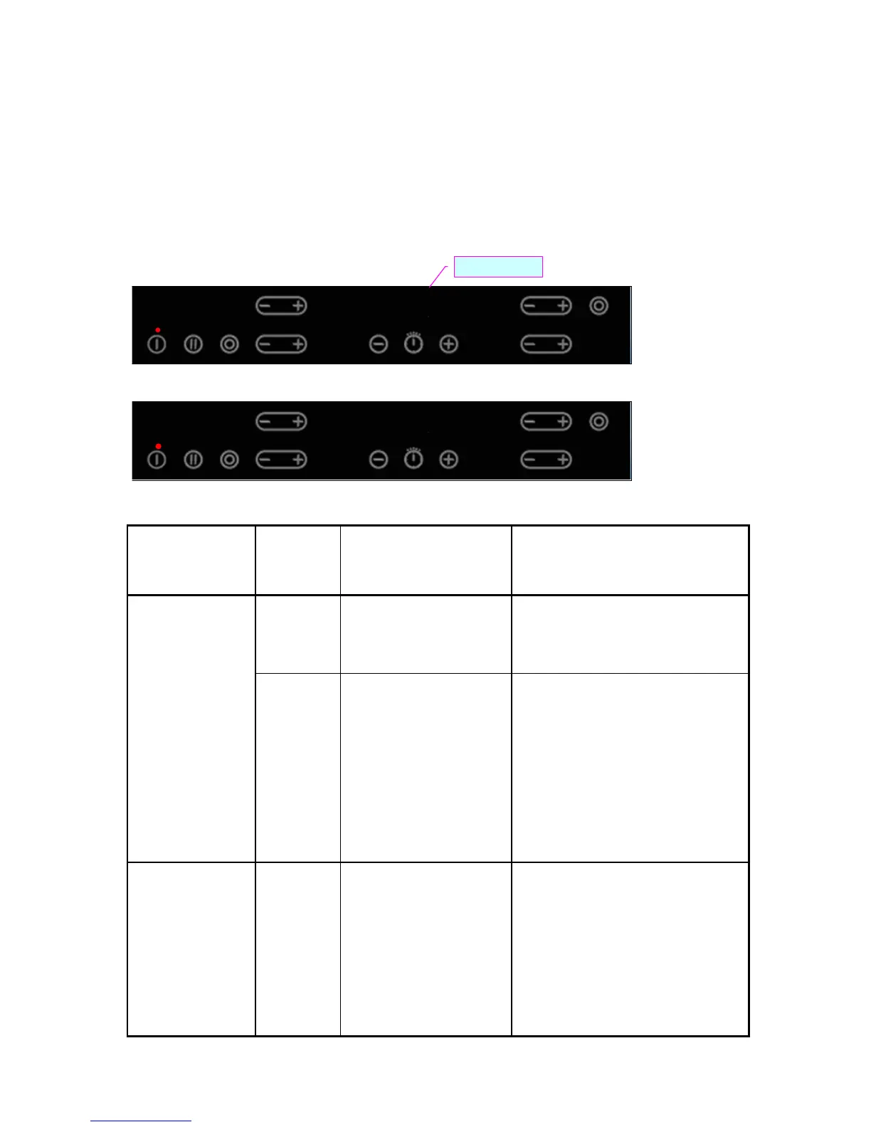 zones are subsequently displayed with an "E" in the cooking phase display and are thereby disabled.