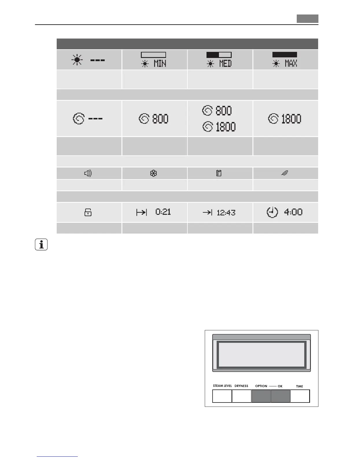 CHILD LOCK cycle duration cycle finish time delay time