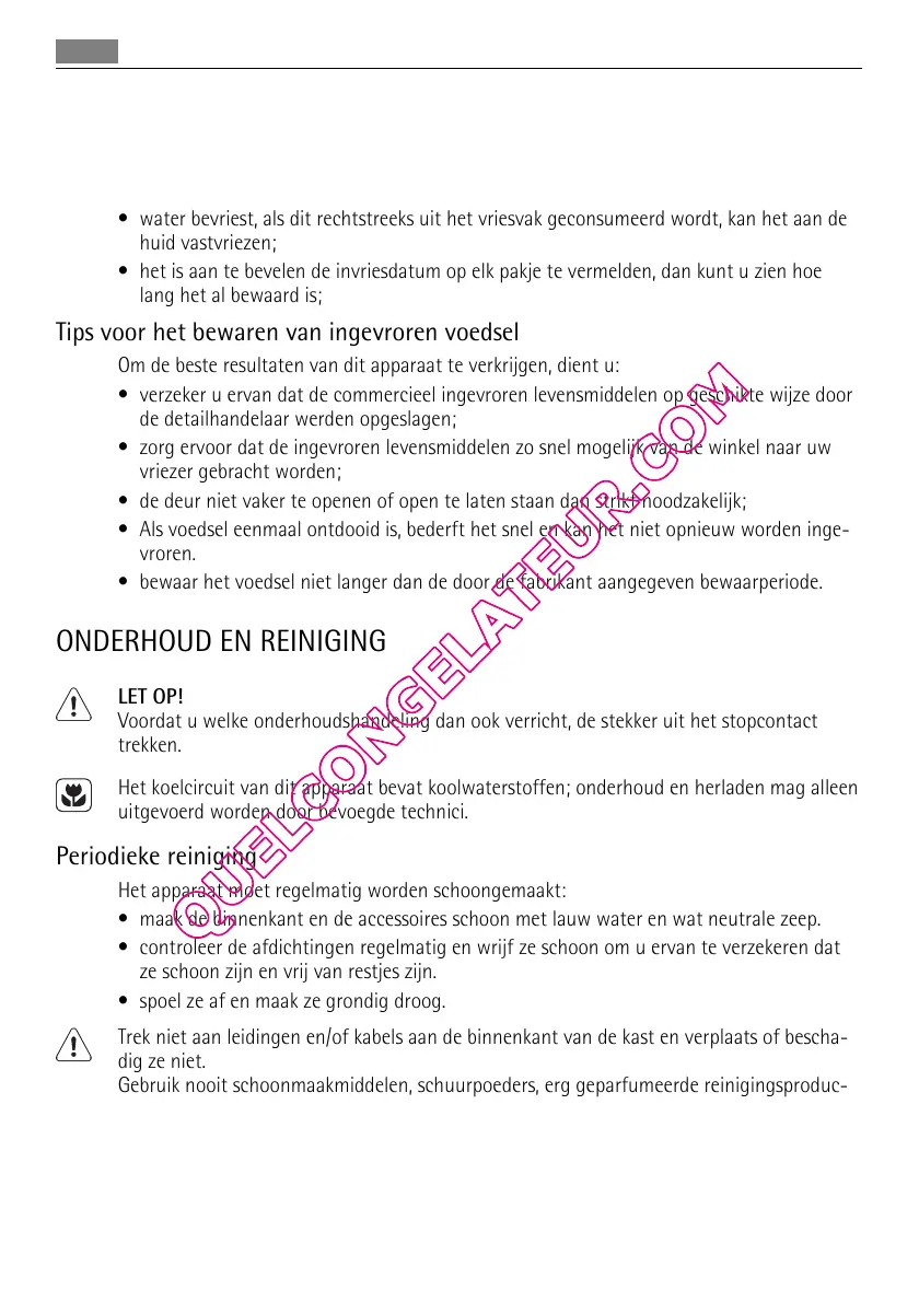• water bevriest, als dit rechtstreeks uit het vriesvak geconsumeerd wordt, kan het aan de