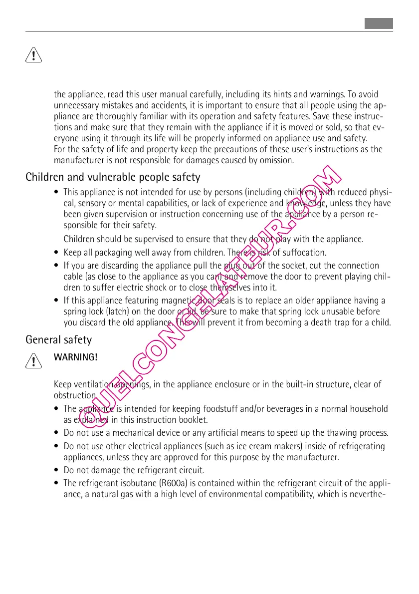 • The refrigerant isobutane (R600a) is contained within the refrigerant circuit of the appli-