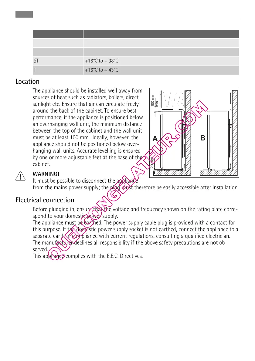 from the mains power supply; the plug must therefore be easily accessible after installation.