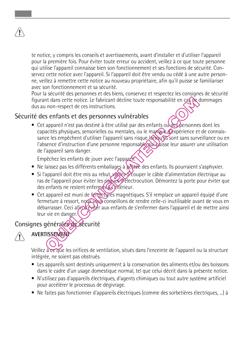 débarrasser. Ceci afin d'éviter aux enfants de s'enfermer dans l'appareil et de mettre ainsi