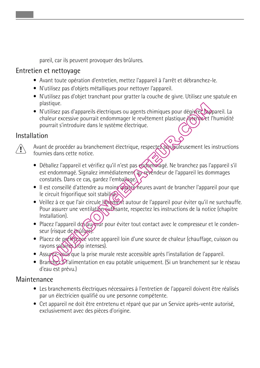 • Les branchements électriques nécessaires à l'entretien de l'appareil doivent être réalisés