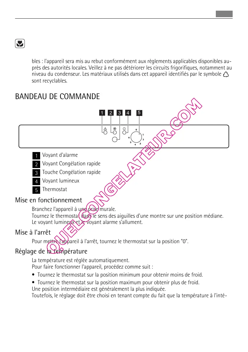 • Tournez le thermostat sur la position maximum pour obtenir plus de froid.