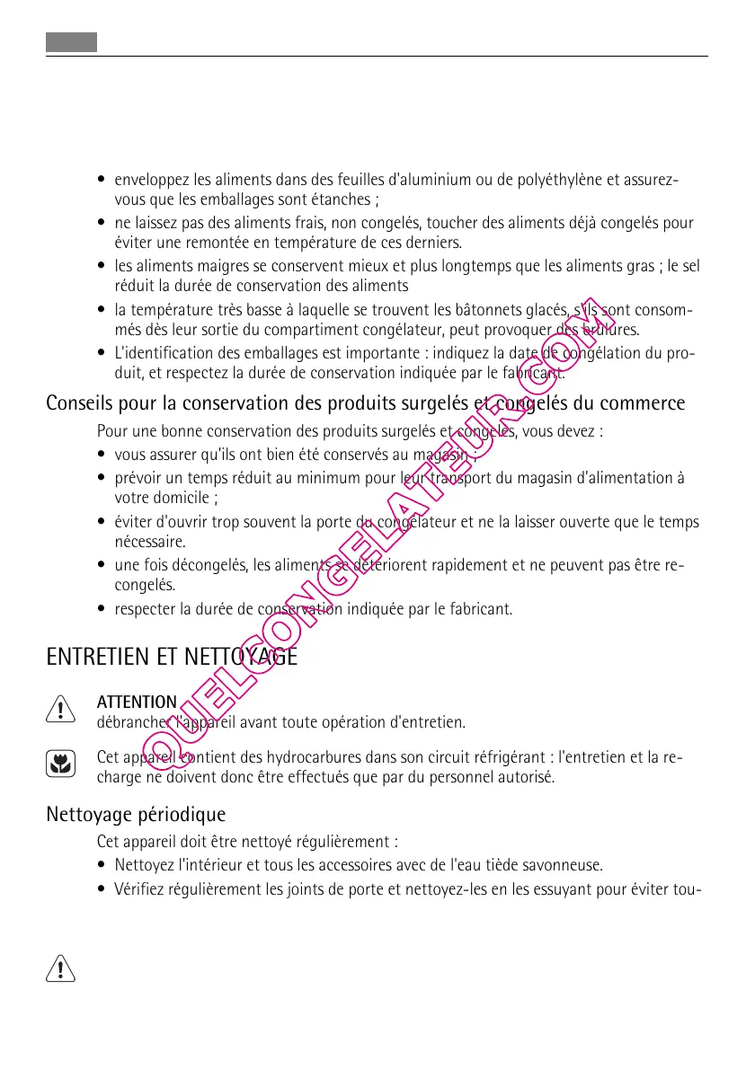 • une fois décongelés, les aliments se détériorent rapidement et ne peuvent pas être re-