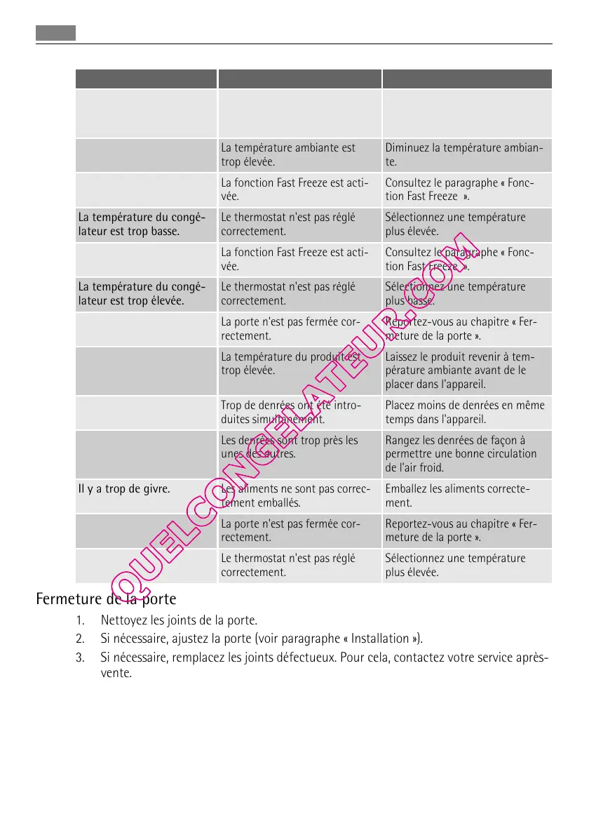 Il y a trop de givre. Les aliments ne sont pas correc-