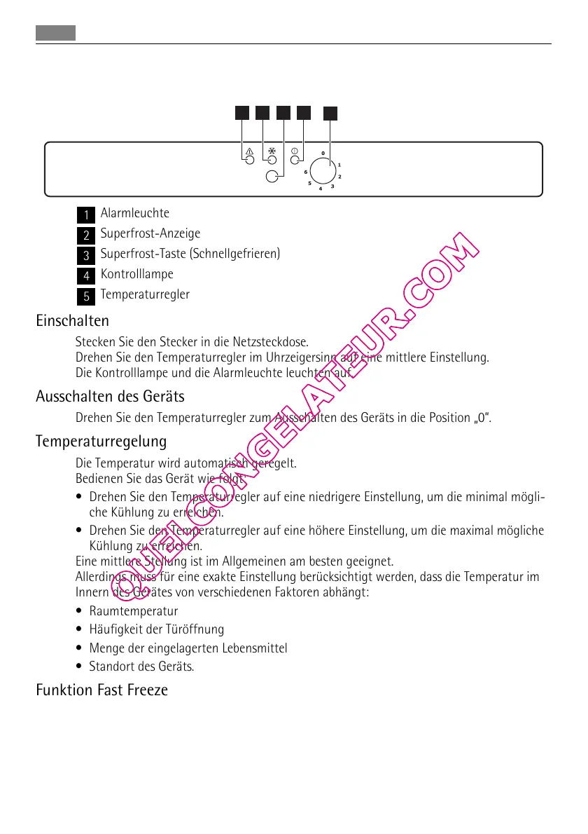 Drehen Sie den Temperaturregler zum Ausschalten des Geräts in die Position „0“.