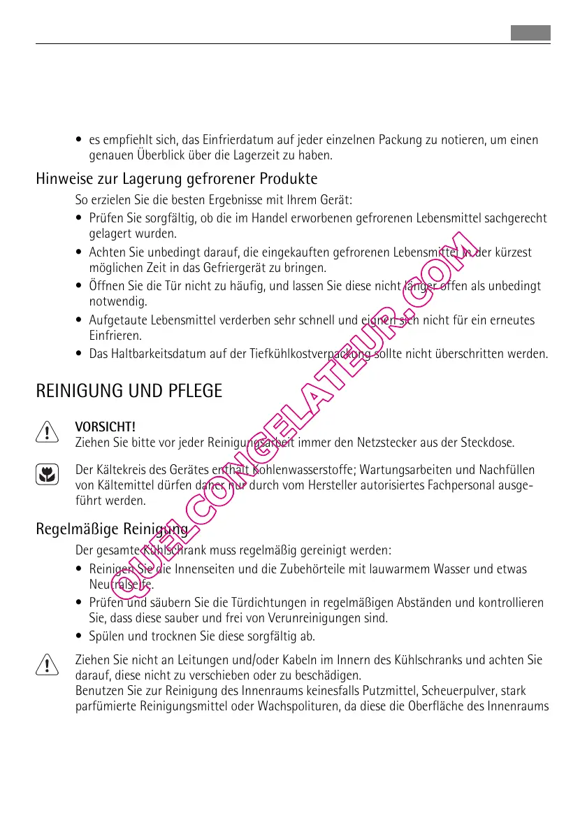 • Aufgetaute Lebensmittel verderben sehr schnell und eignen sich nicht für ein erneutes