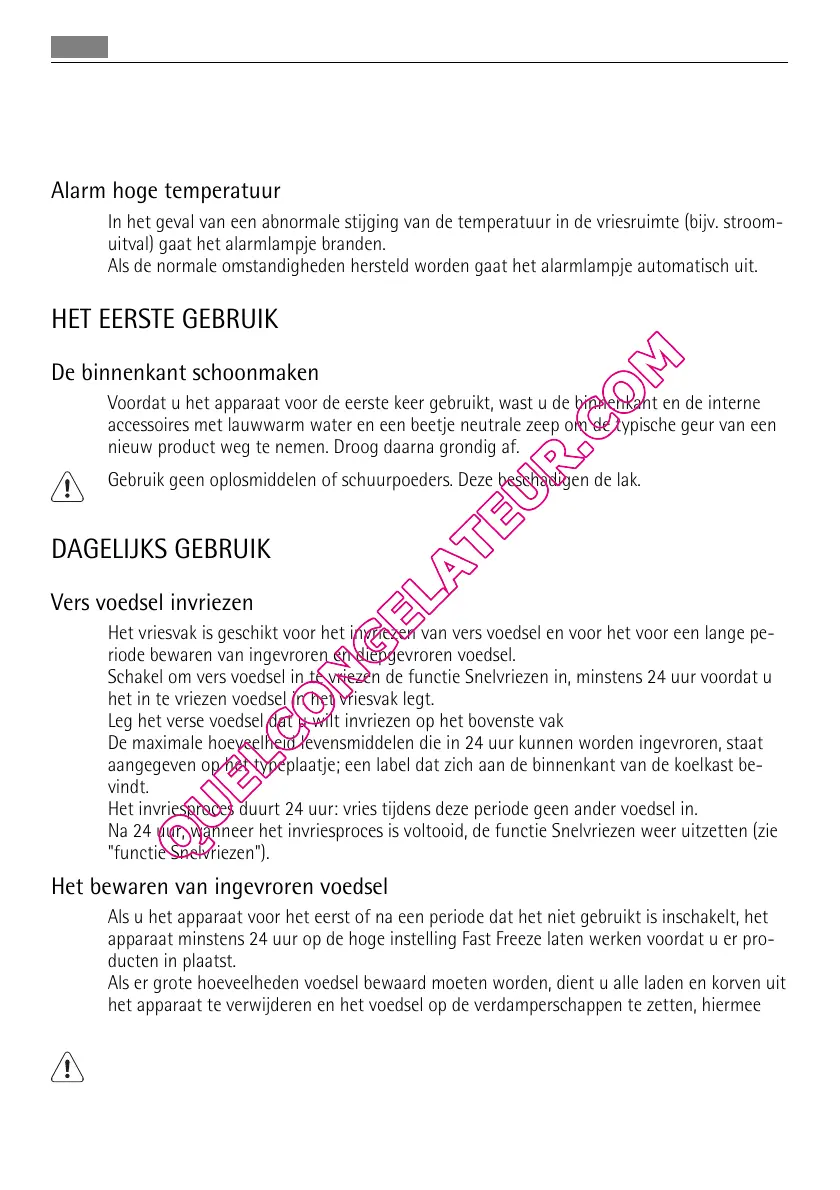 In het geval van een abnormale stijging van de temperatuur in de vriesruimte (bijv. stroom-