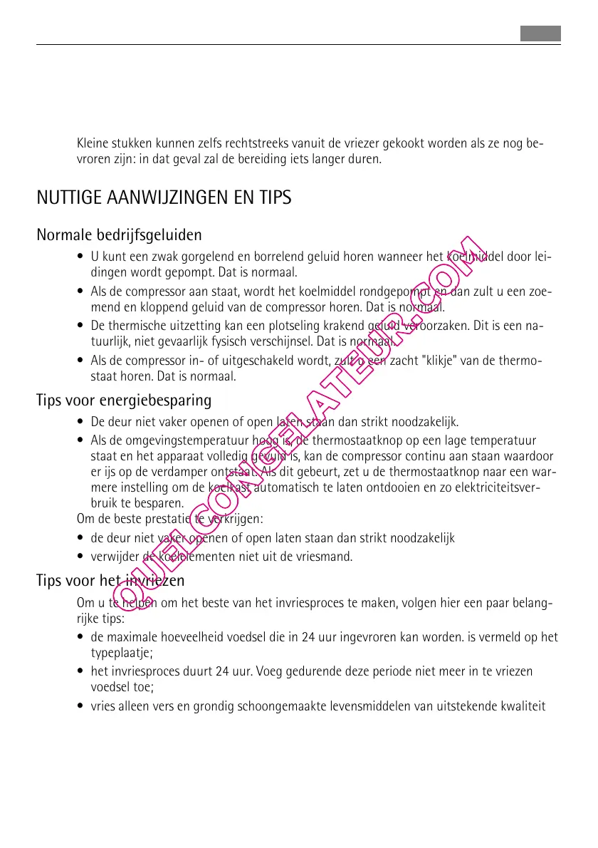 • het invriesproces duurt 24 uur. Voeg gedurende deze periode niet meer in te vriezen