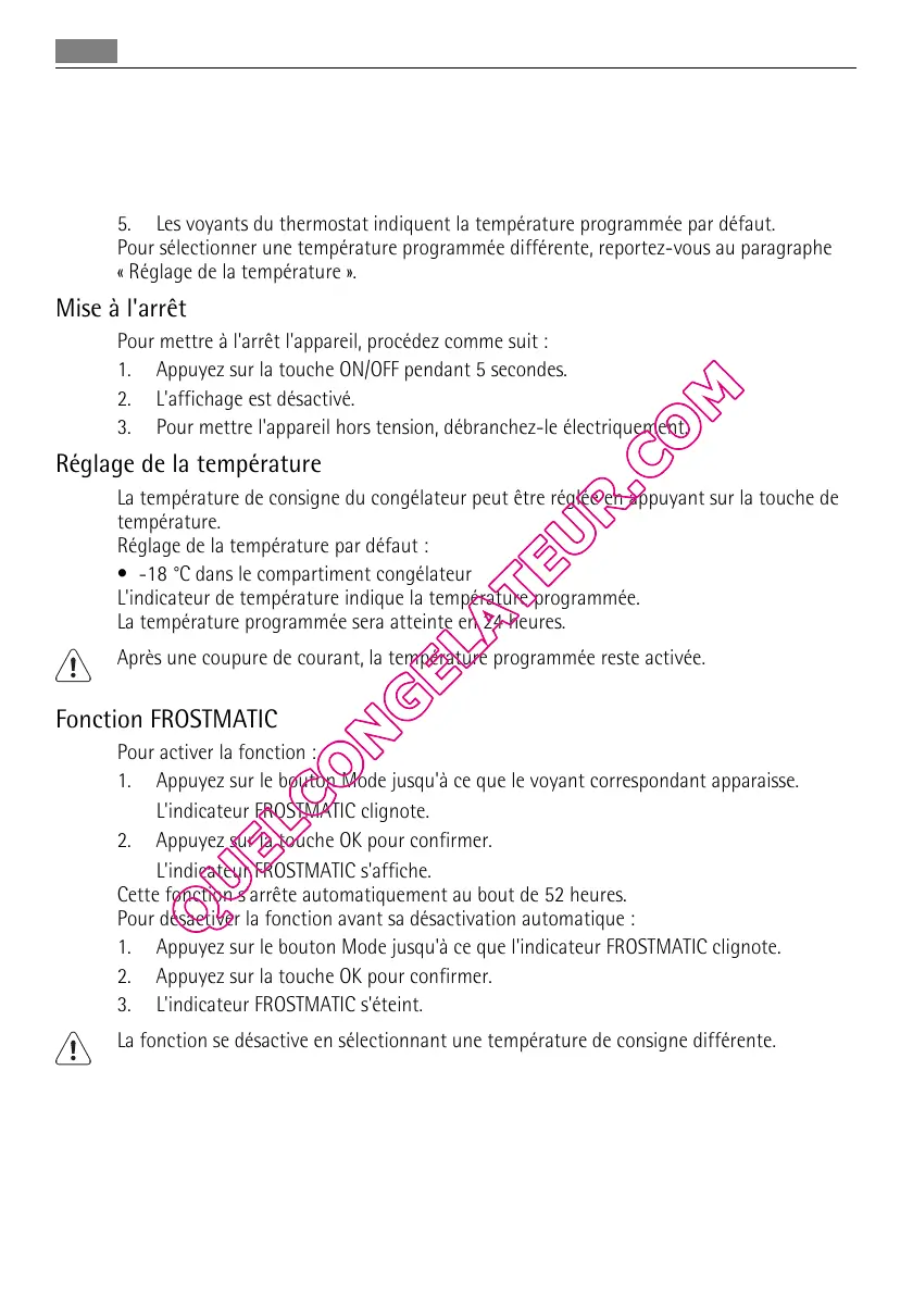 1. Appuyez sur le bouton Mode jusqu'à ce que l'indicateur FROSTMATIC clignote.