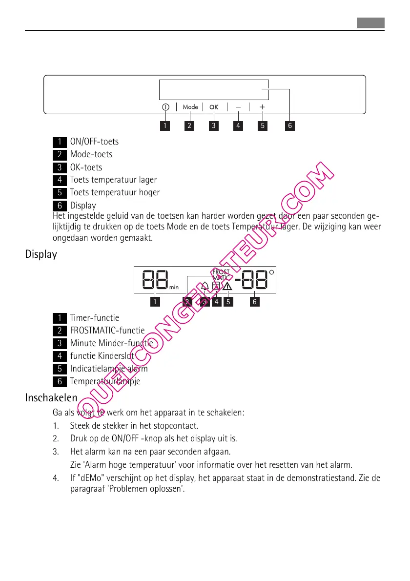 4. If "dEMo" verschijnt op het display, het apparaat staat in de demonstratiestand. Zie de