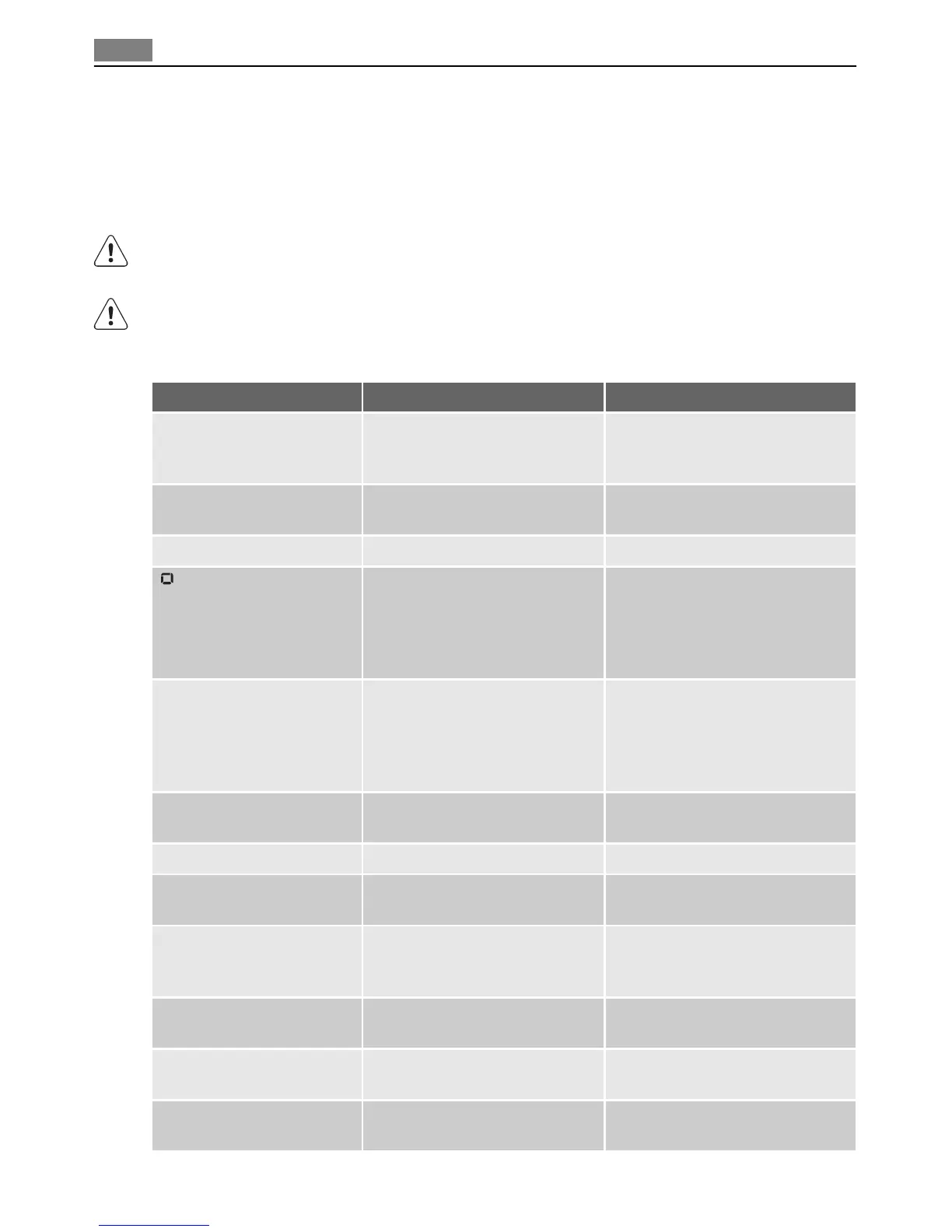 Problem Possible cause Solution