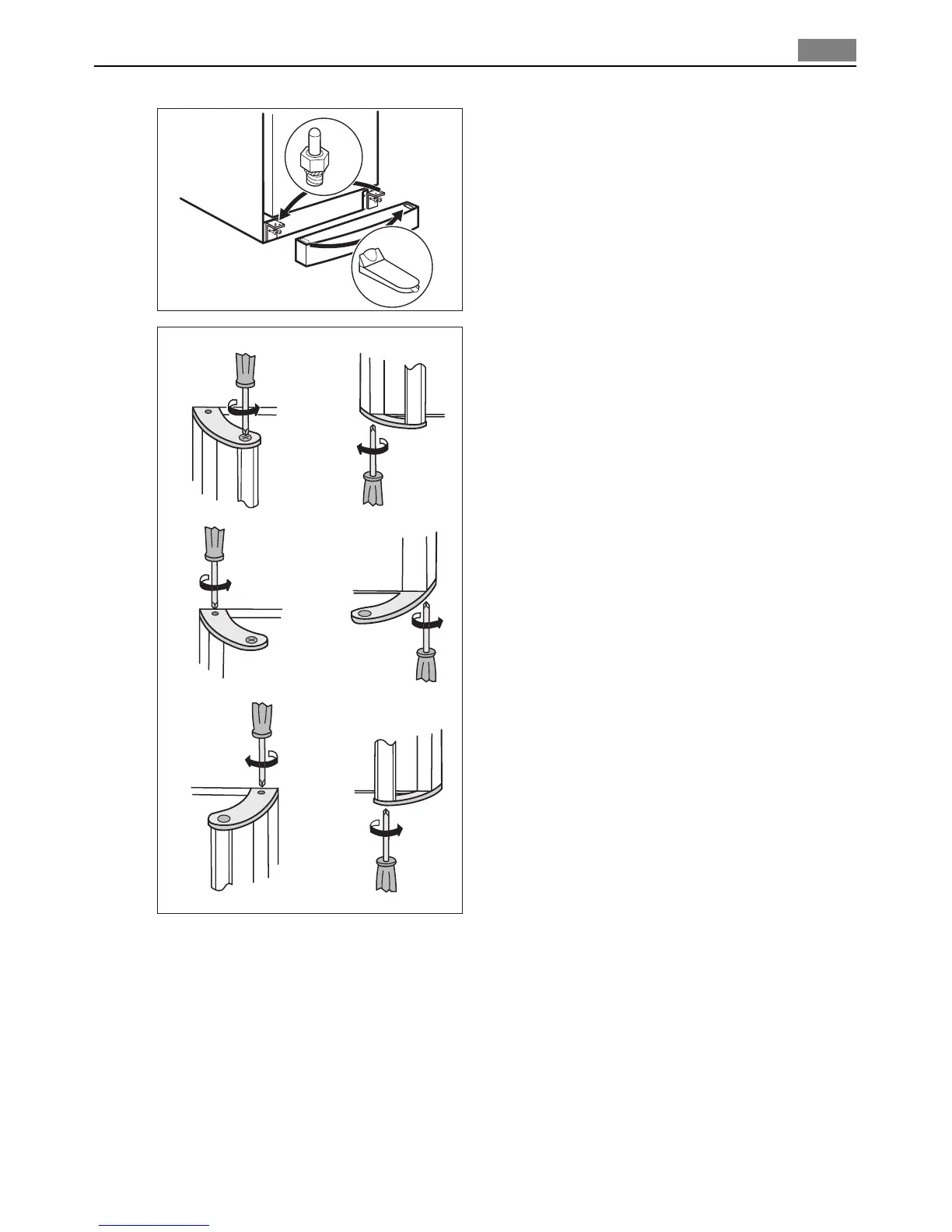 • Screw the lower hinges.