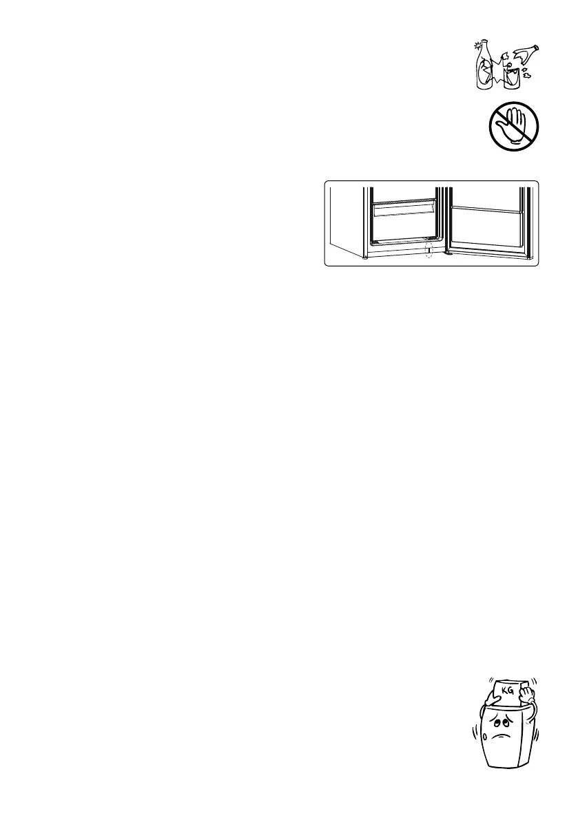 • Do not place glass bottles or cans in the ice-making compartment as they