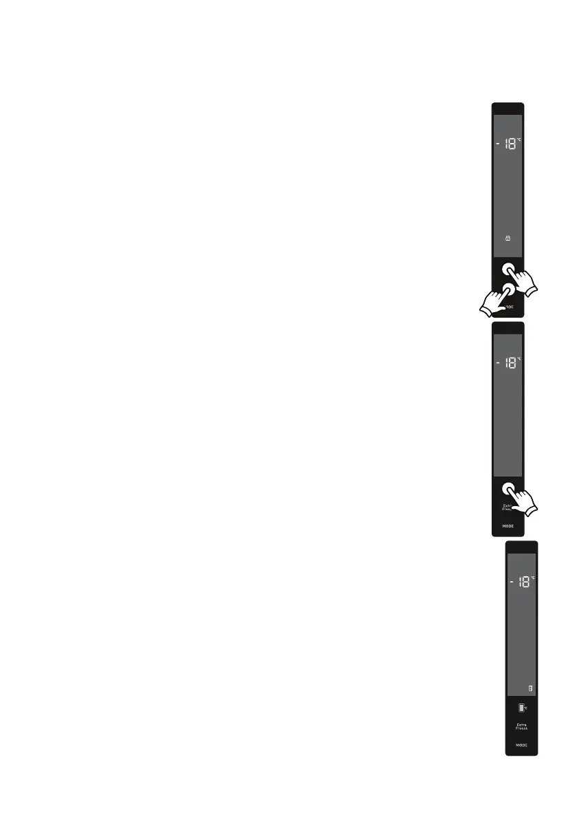 Press on super and freezer temperature setting buttons simultaneously for 5