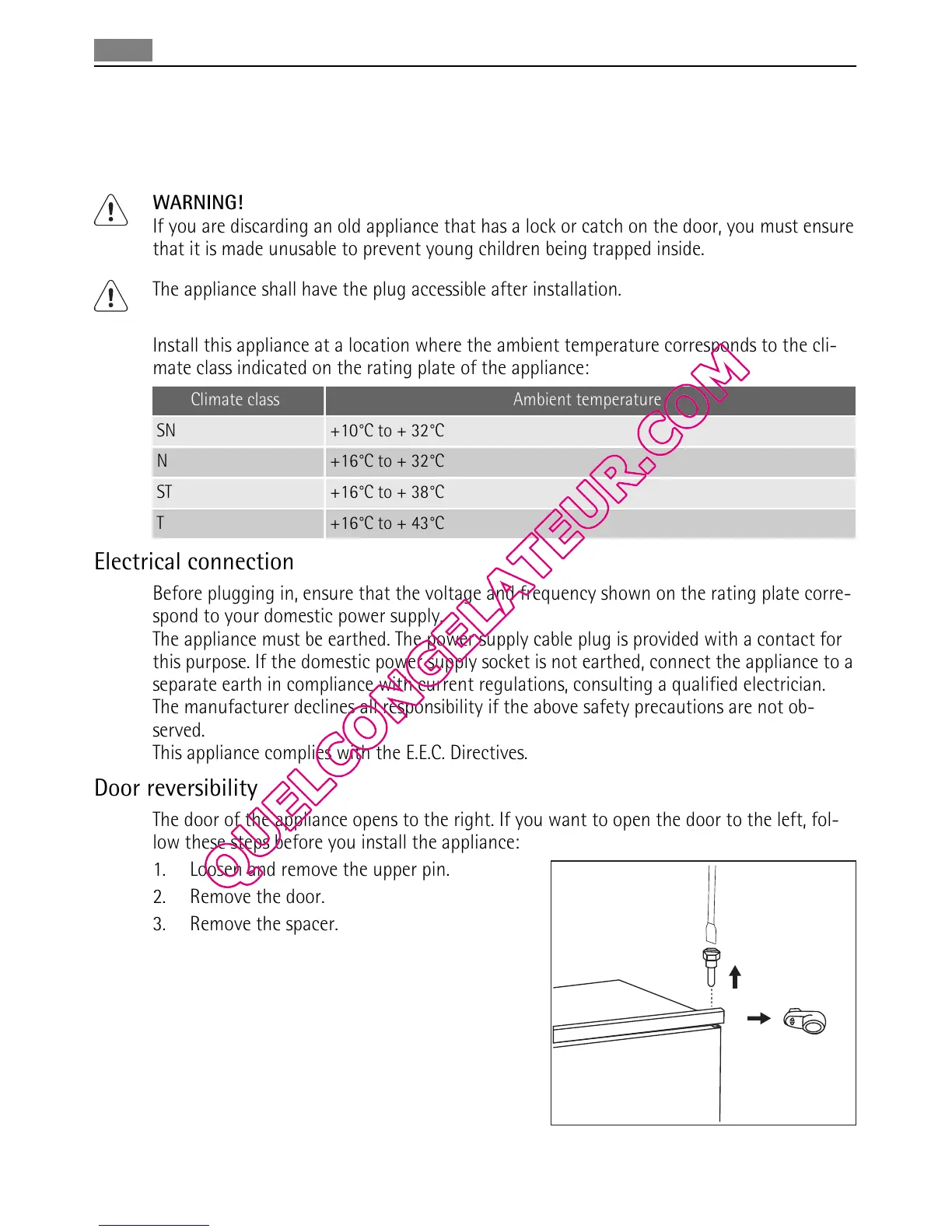 The door of the appliance opens to the right. If you want to open the door to the left, fol-