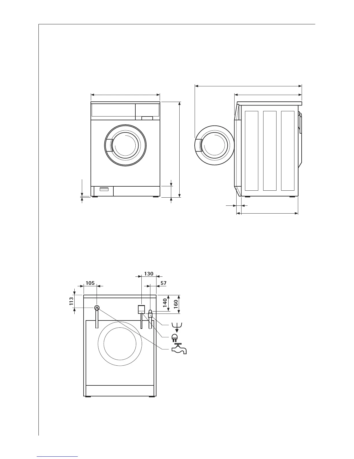 AEG Automatic - Appliance Dimensions; Front and Side Views; Rear View