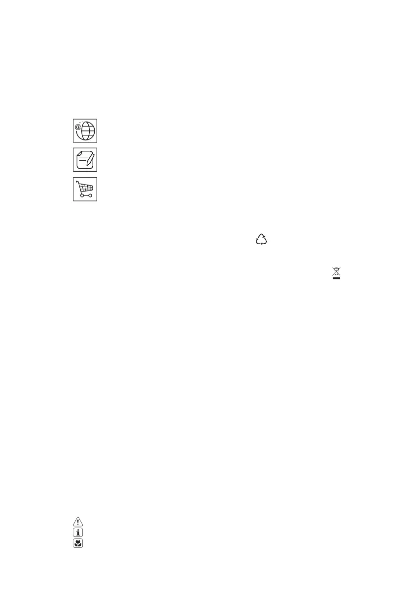 Resirkuler materialer som er merket med symbolet . Legg emballasjen i riktige