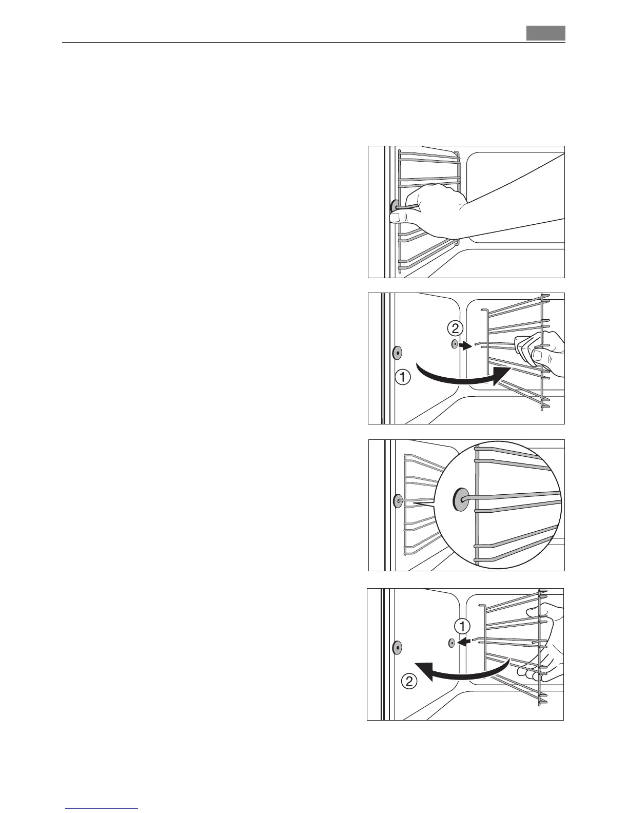 oven wall (1) and then unhook at the back