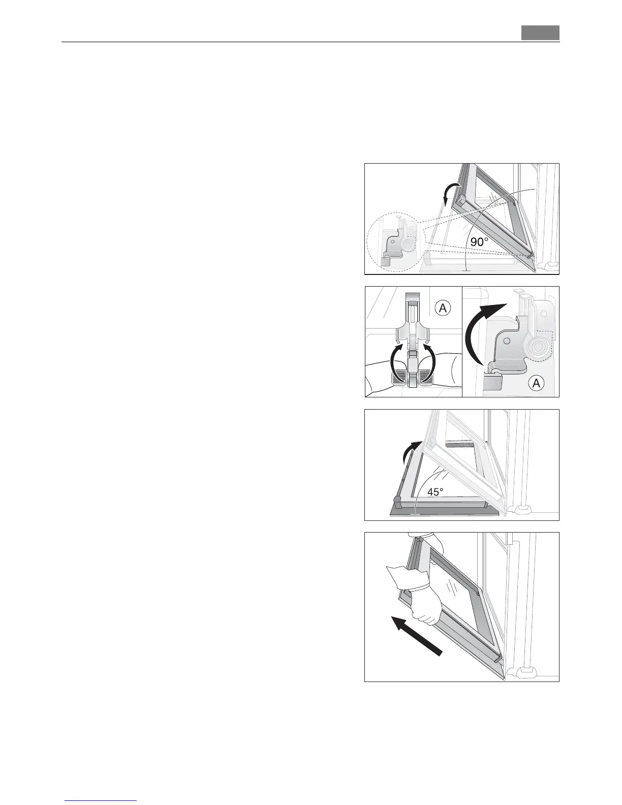 For easier cleaning of the oven interior, the oven door can be taken off its hing-