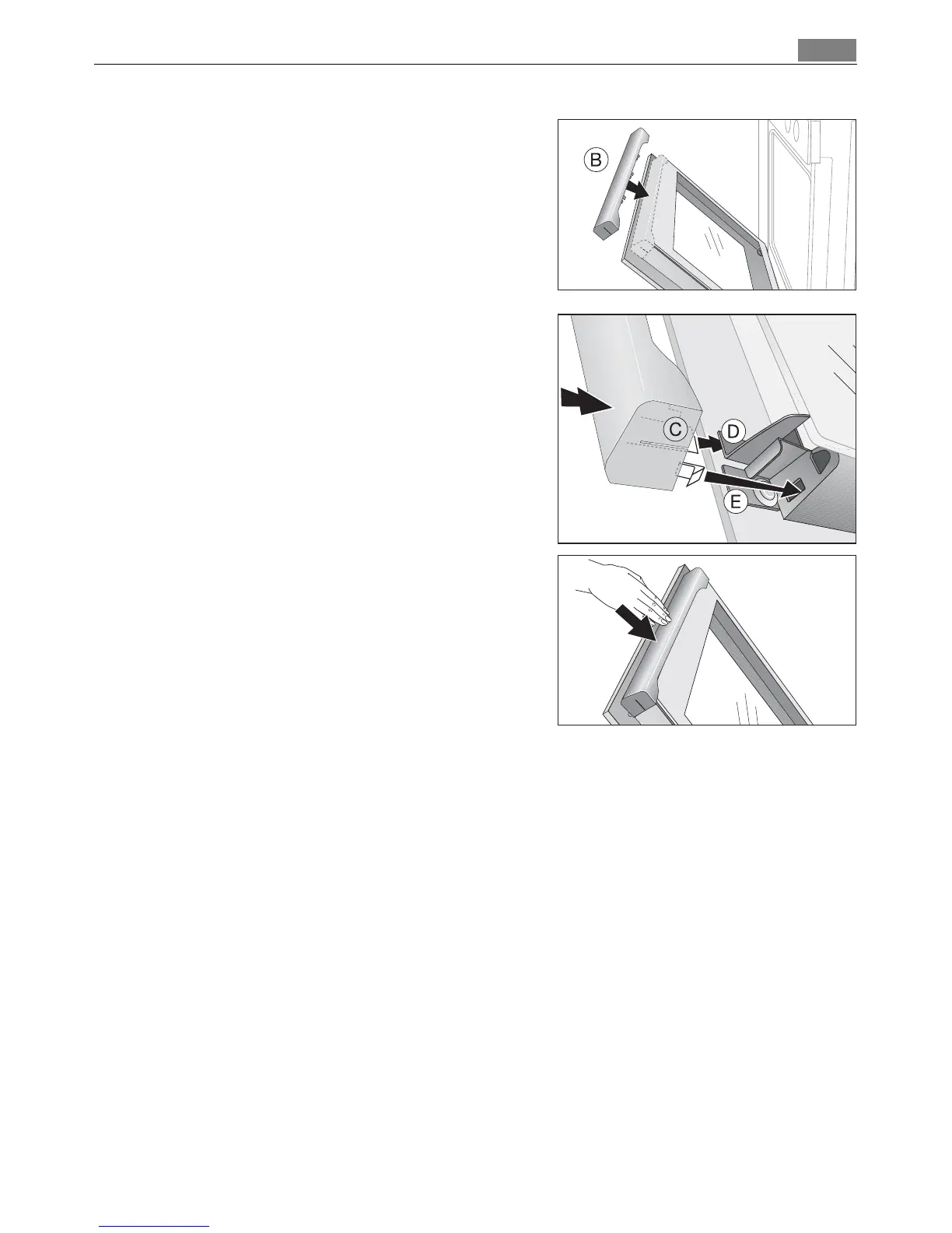 2. Take hold of the door trim (B) at each side,