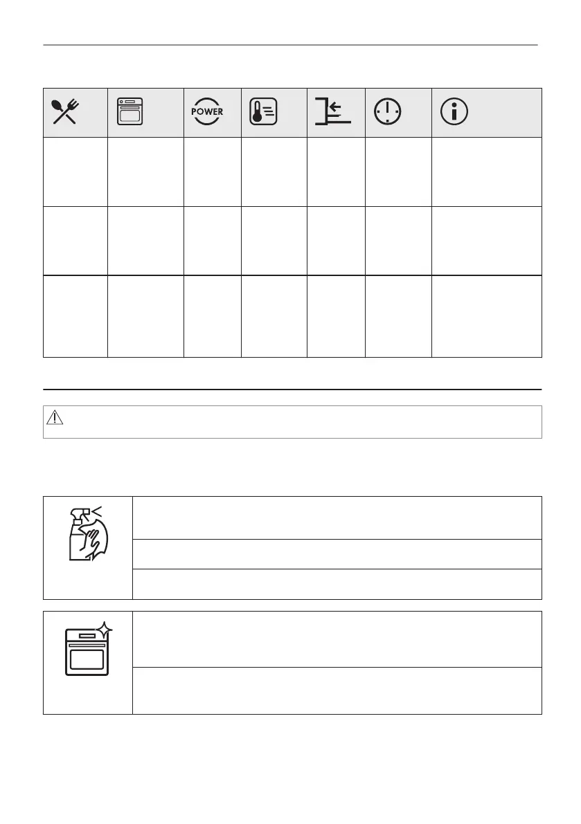 Ikke oppbevar maten i produktet lenger enn 20 minutter. Tørk ovnsrommet kun