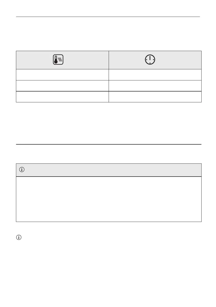 Temperatur och tillagningstid i tabellerna är endast riktvärden. Hur de ska väljas beror på recept