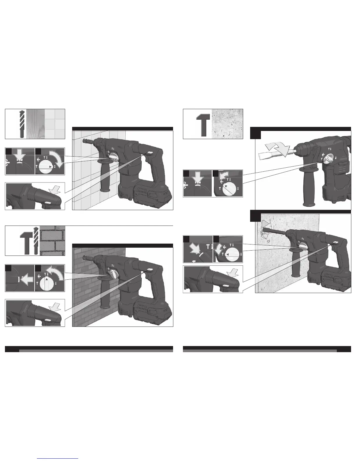 AEG BBH 18 - Mode Selection for Drilling Types; Drill Bit Depth Marking