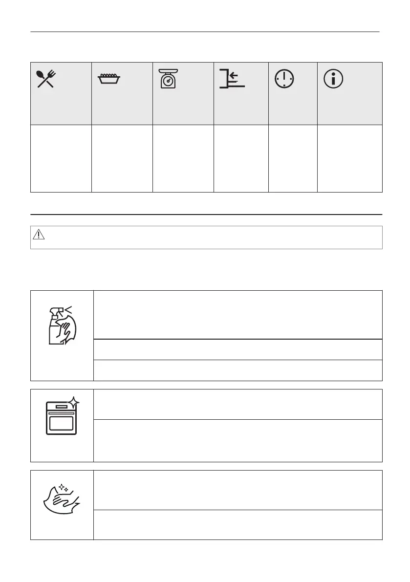 Ikke oppbevar maten i produktet lenger enn 20 minutter. Tørk ovnsrommet kun