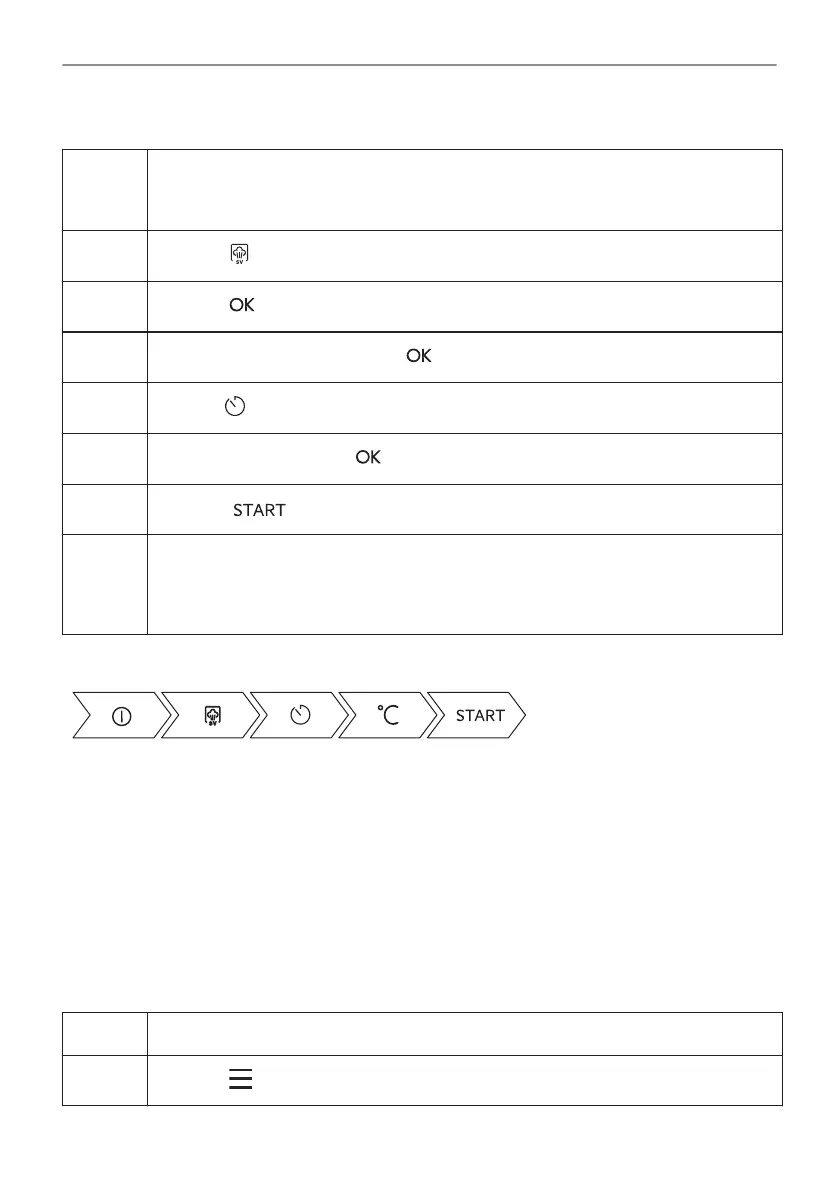 Välj symbolen för tillagningsfunktionen och tryck på den för att komma in i underme‐