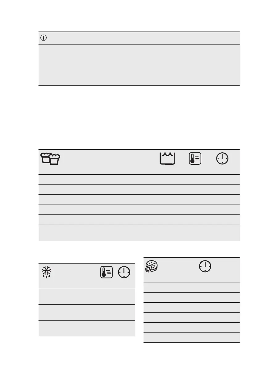 The temperature and cooking times in the tables are guidelines only. They depend on the