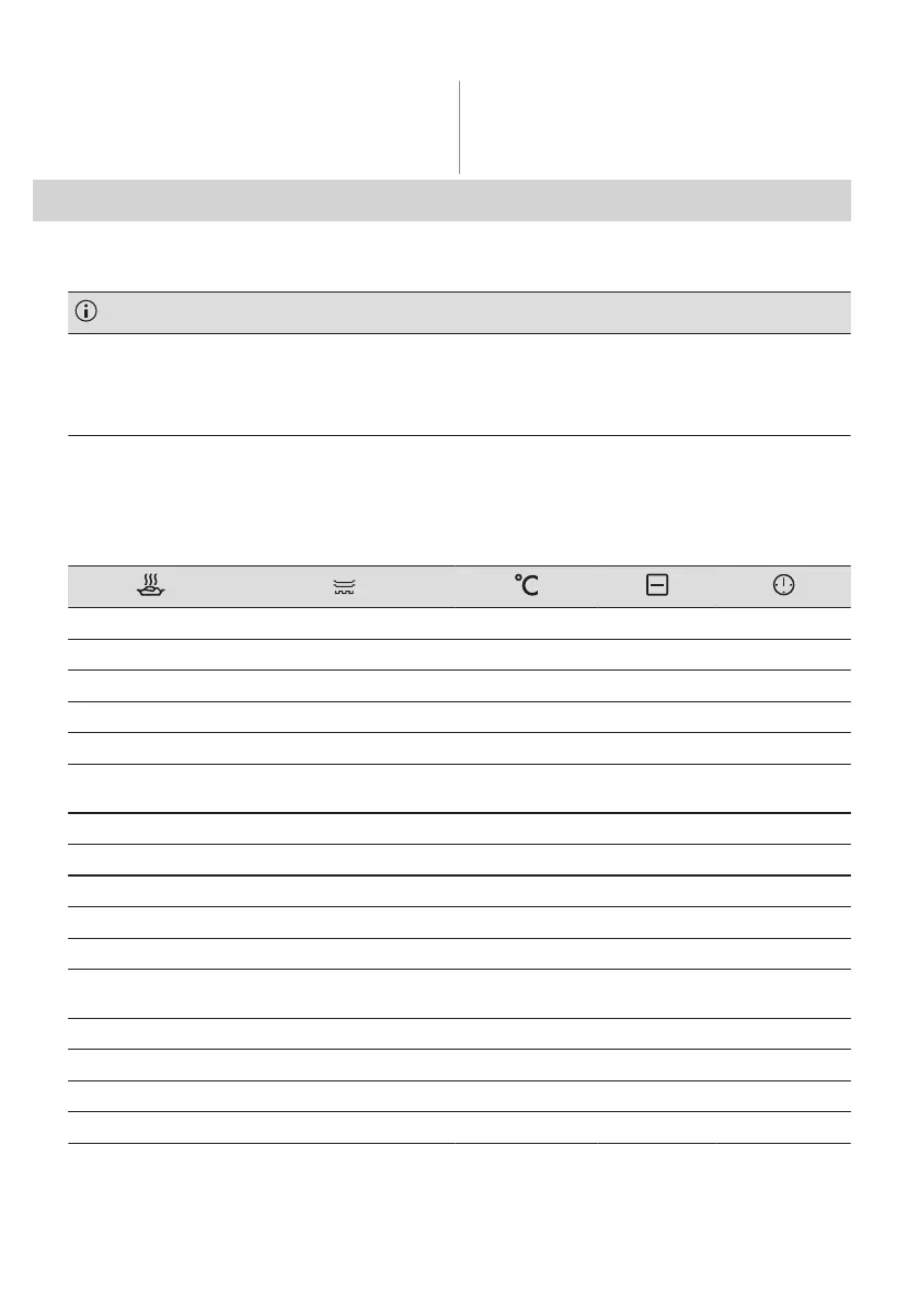 The temperature and cooking times in the tables are guidelines only. They depend on the recipes and the quality
