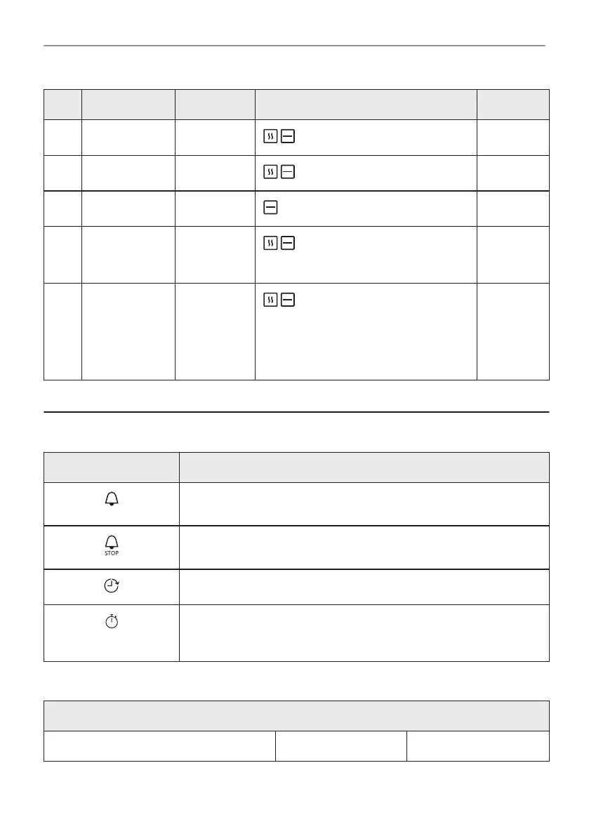 Kooktijd. Wanneer de timer stopt, klinkt het signaal en stopt de verwar‐