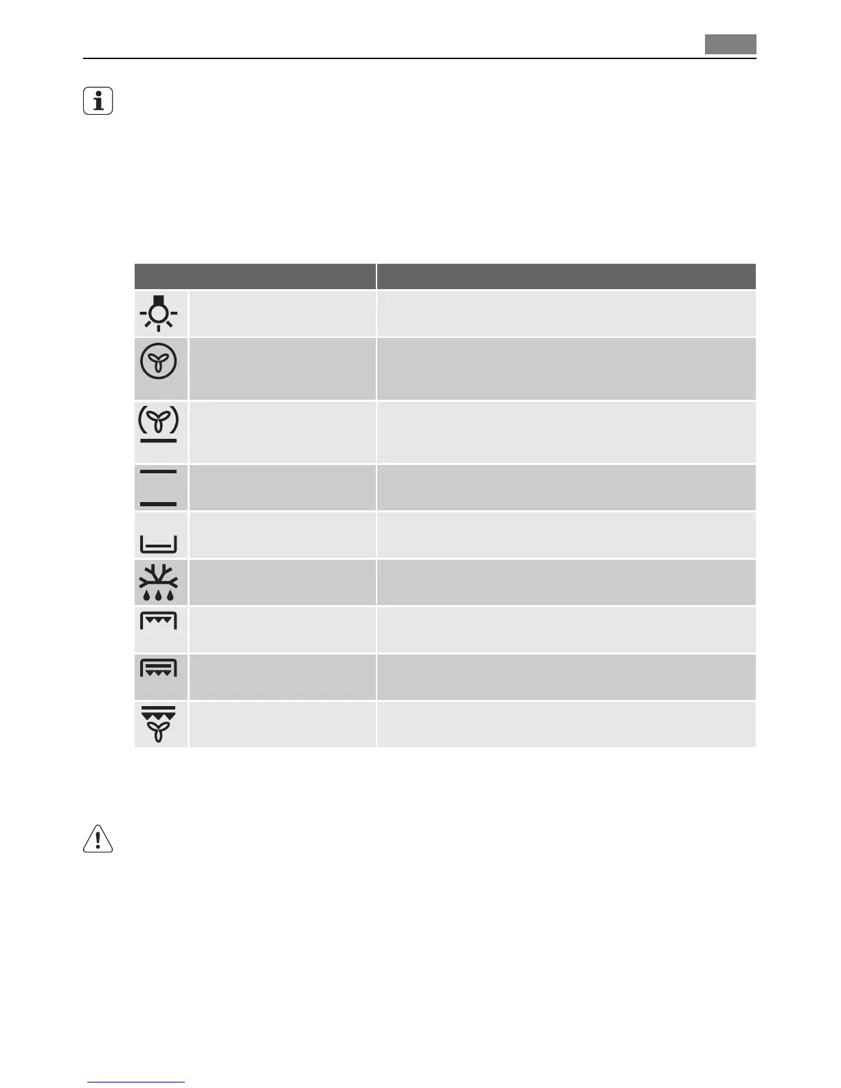 Knob symbol, indicator or lamp (depends on the model - refer to the appliance