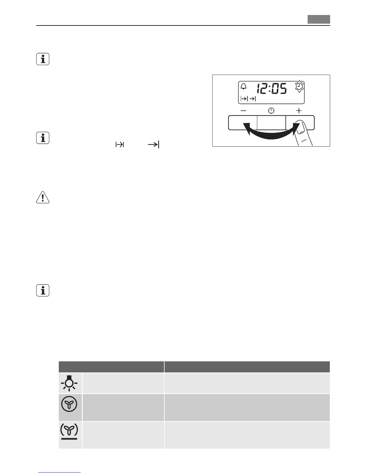 • The symbol shows whether the knob controls one of the cooking zones, the oven func-