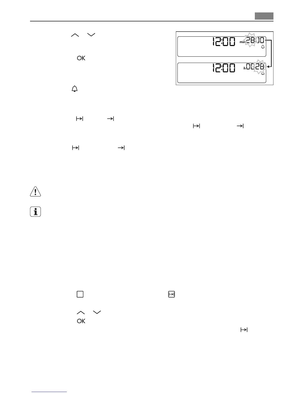 4. When set time ends, an acoustic signal operates for two minutes. Symbol