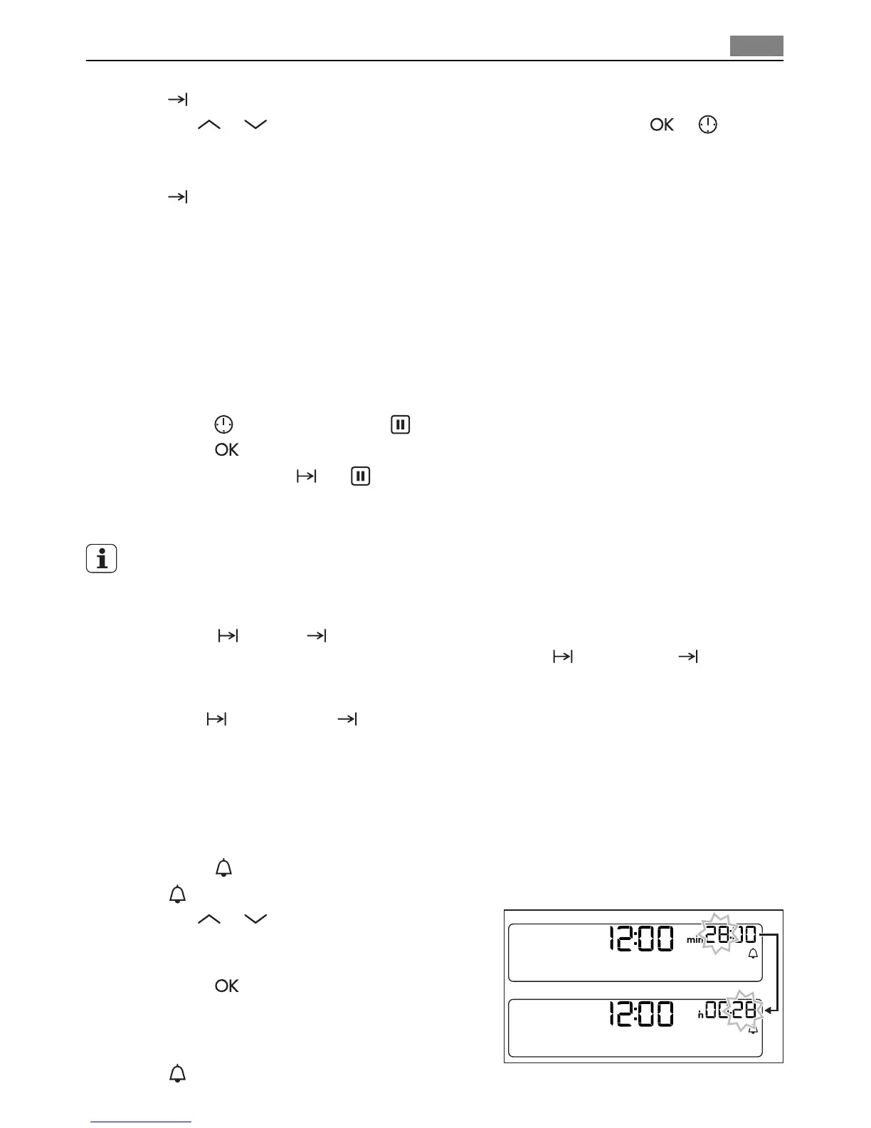 Use the MINUTE MINDER to set a countdown (maximum 23 h 59 min). This function has no