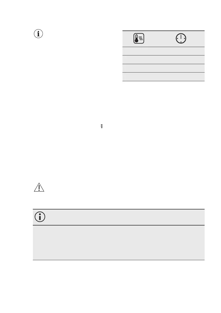 The temperature and cooking times in the tables are guidelines only. They depend on the