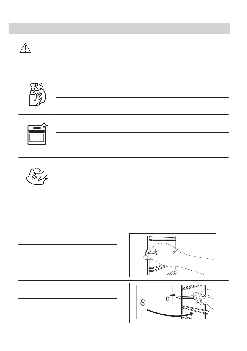 und reinigen Sie damit die Vorderseite des Backofens. Reinigen und überprüfen Sie die Tür‐